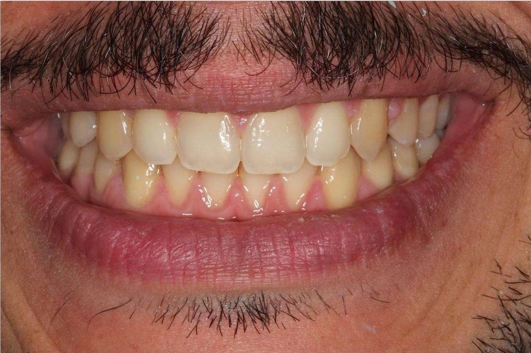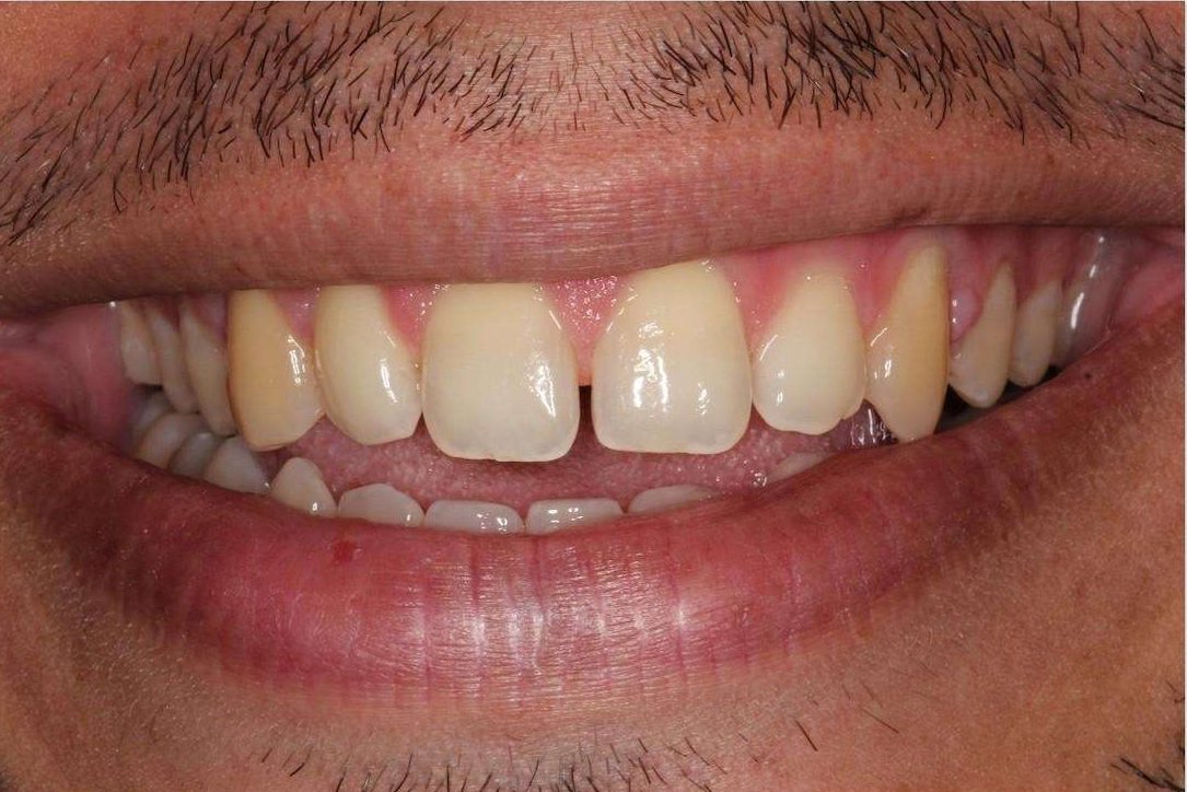 This patient presented with misaligned teeth, causing an open bite and displaced jaw. Invisalign treatment helped to realign teeth and restore jaw joint health and function, resulting in an improved overall facial appearance.