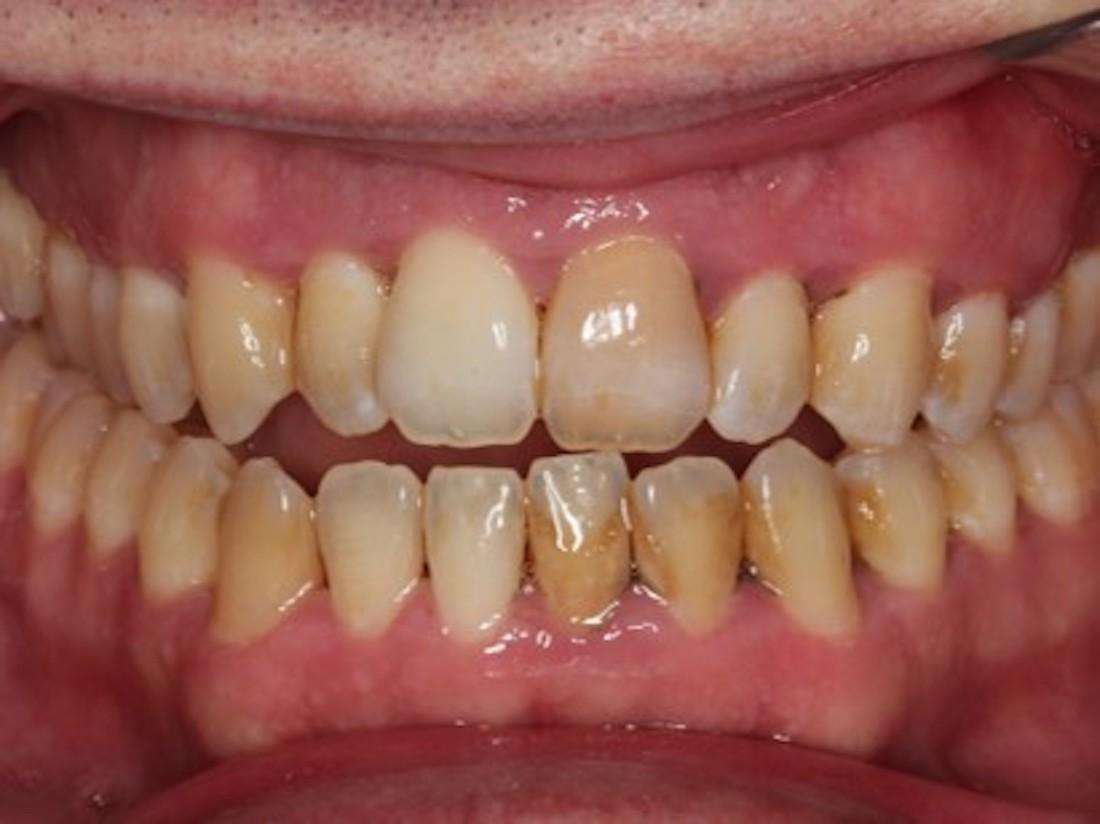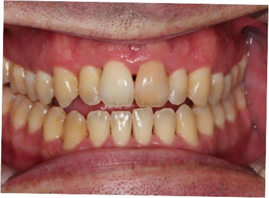 This patient presented with swelling gums, bleeding gums, and bone loss due to their immune response to bacteria toxins. Gum treatment was performed to fight the bacteria challenge, combat inflammation, and prevent further bone loss. Teeth were preserved, and continued gum maintenance extends protection to teeth and promotes total health.