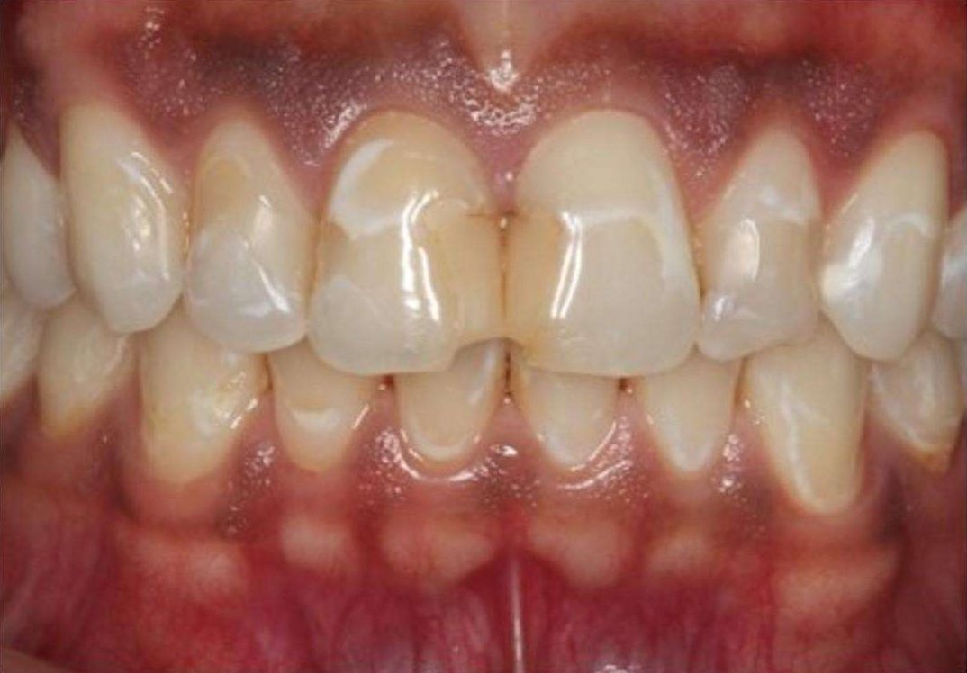 This patient presented with large restorations and decay encroaching on the nerve. Root canal treatment was performed to prevent severe pain, and crowns were placed to protect the remaining tooth structure. The crowns enhanced the patient’s appearance.