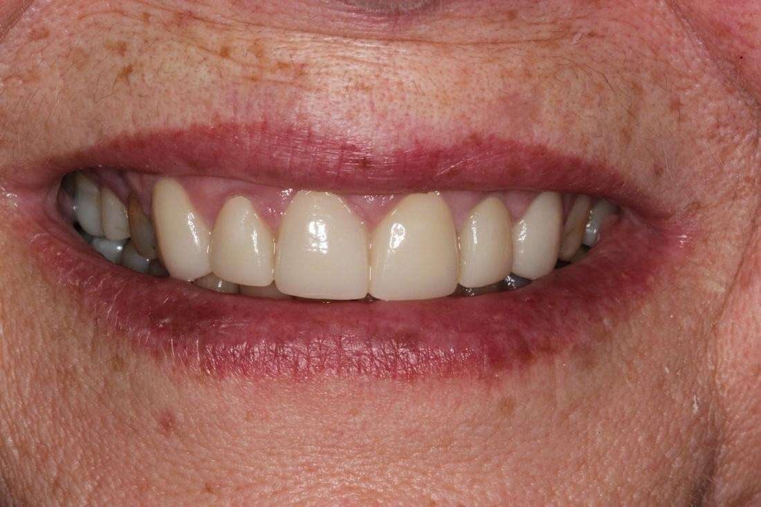 This patient was concerned about weak and crumbling teeth. Bite alignment was performed to improve jaw joint health, and crown treatment was done to preserve the existing tooth structure. This provided relief from joint pain and headaches, improved the stability of restorations, and restored the patient’s youthfulness and smile.